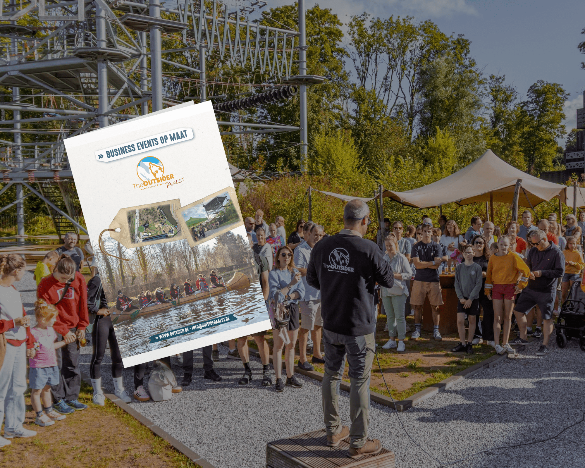Prêt à escalader et grimper sur le parcours accrobranche ou à braver les eaux de la Dendre? Chez Outsider Aalst, vous êtes au bon endroit pour les teambuildings en plein air les plus fous. Partez à l'aventure sur terre ou sur l'eau avec vos collègues, amis et famille ou avec votre école et passez une journée inoubliable.